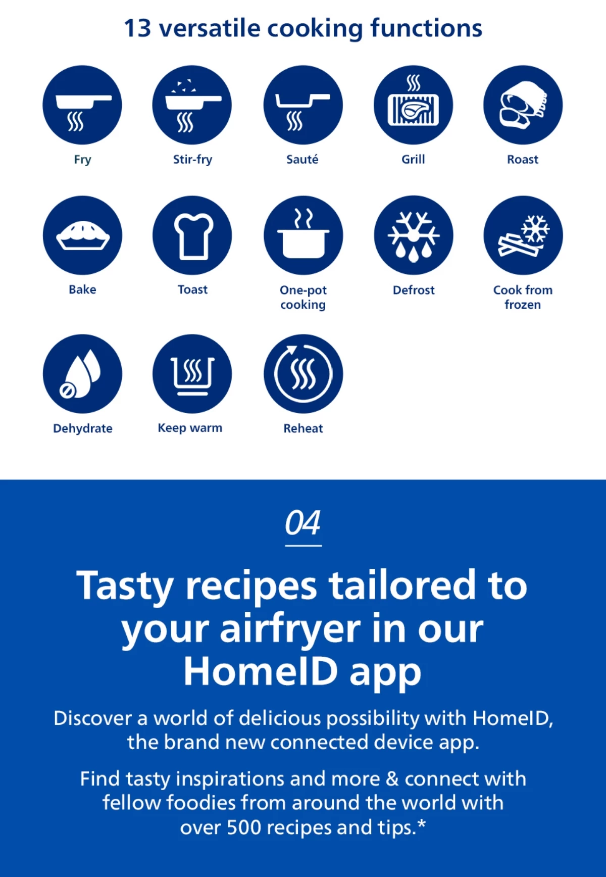Philips NA221/09 | 13-in-1 Airfryer | 4.2L | Fry, Grill, Bake…++ | See-Thru Window | Up to 90% Less Fat | Touch Screen